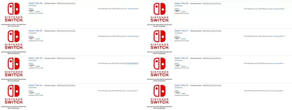 De 74 à 99$… parle-t-on de jeux, accessoires, adaptateurs… Nul ne sait, mais les propositions fusent sur les réseaux sociaux, et beaucoup laissent à penser que cette année, Nintendo va encore mettre le paquet.