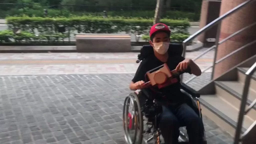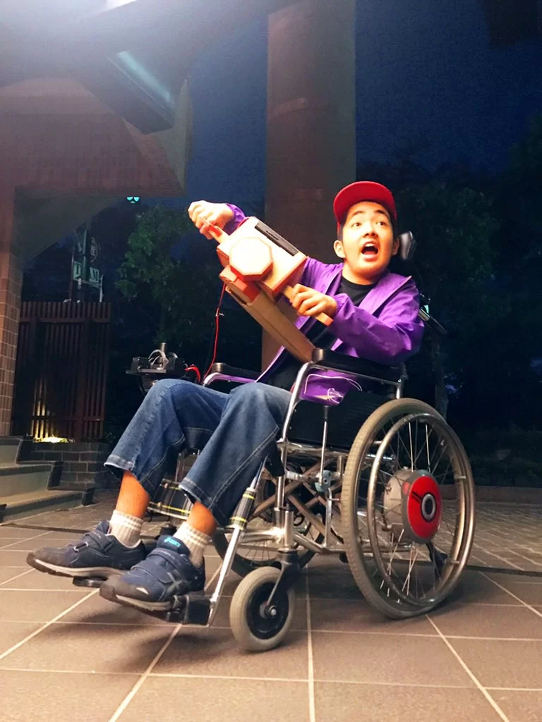 心臓の病で車椅子ユーザーの13歳インターンの為に、皆でNintendo labのバイクキットで操作できる車椅子を作った。