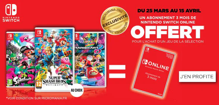 L’enseigne Micromania propose une nouvelle offre : pour l’achat d’un titre parmi une sélection donnée, recevrez gratuitement 3 mois d’abonnement au service Nintendo Switch Online.