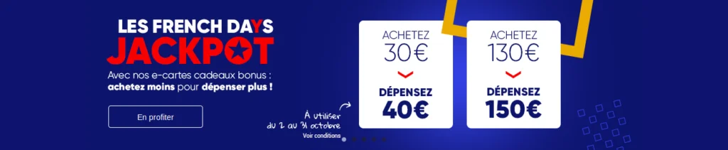 L’enseigne remet aussi au goût du jour ses e-cartes cadeaux bonus Jackpot à l’occasion des jours imbattables du e-commerce cocorico :