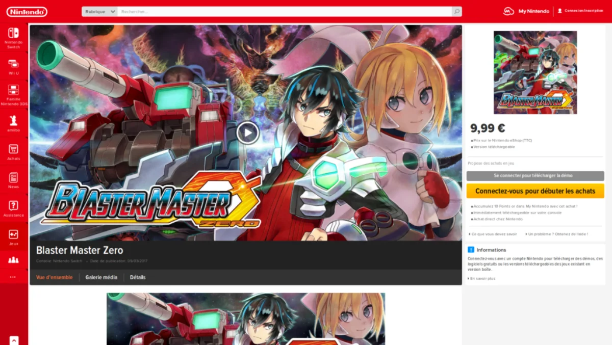 Proposé quelques jours après la sortie de la console hybride, Blaster Master Zero est proposé depuis le 9 mars à 9€99 sur l’eShop Nintendo.