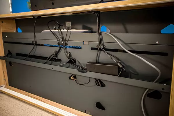 • Un ingénieux système de scratchs et clips pour pouvoir enfin ranger proprement les multiples câbles discrètement derrière une cloison