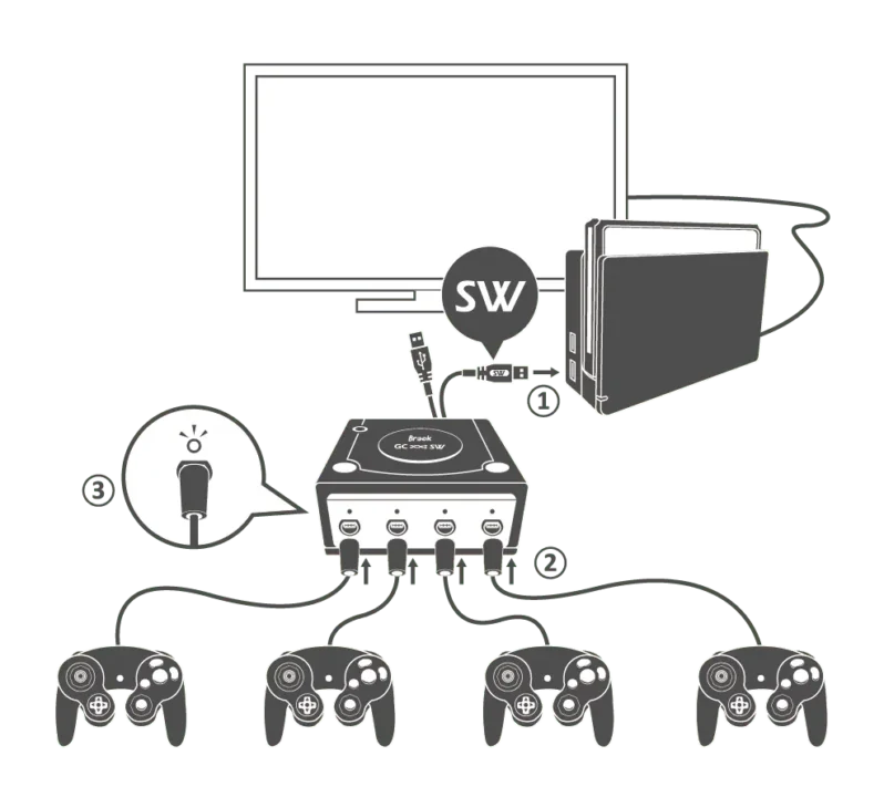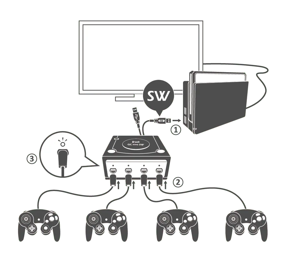 Ce contrôleur vous permet d’ajouter jusqu’à 4 manettes Gamecube pour des parties multi locales endiablées. Bonne nouvelle, l’adaptateur supporte aussi la fonction Turbo fire.