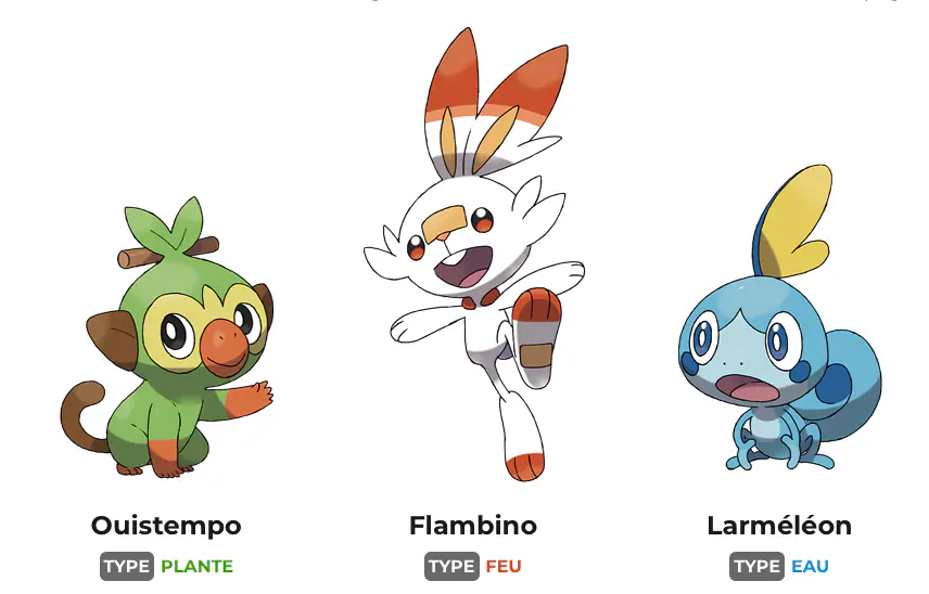 Jeu Pokémon Épée et Pokémon Bouclier sur Nintendo Switch : les trois Pokémon de départ