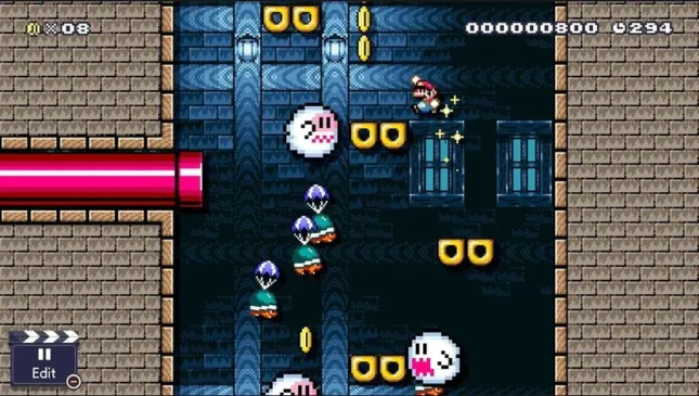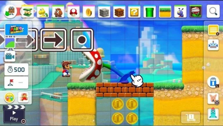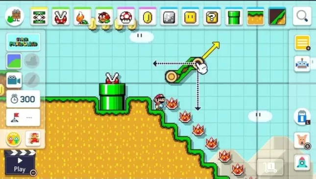 On pourra créer en duo en passant un Joy-Con à un ami, tout ça sur le même écran ! De belles heures de création en perspective. Chaque niveau pourra être personnalisé avec des conditions de victoire. Récolter le bon nombre de pièces, éliminez tous les Skelerex ou atteindre la fin du niveau en tant que Super Mario, la liste des conditions est extrêmement longue. On trouvera également les tourbillons, les stalactites ou encore les tapis roulants pour rendre les créations toujours plus complètes et complètement dingues.