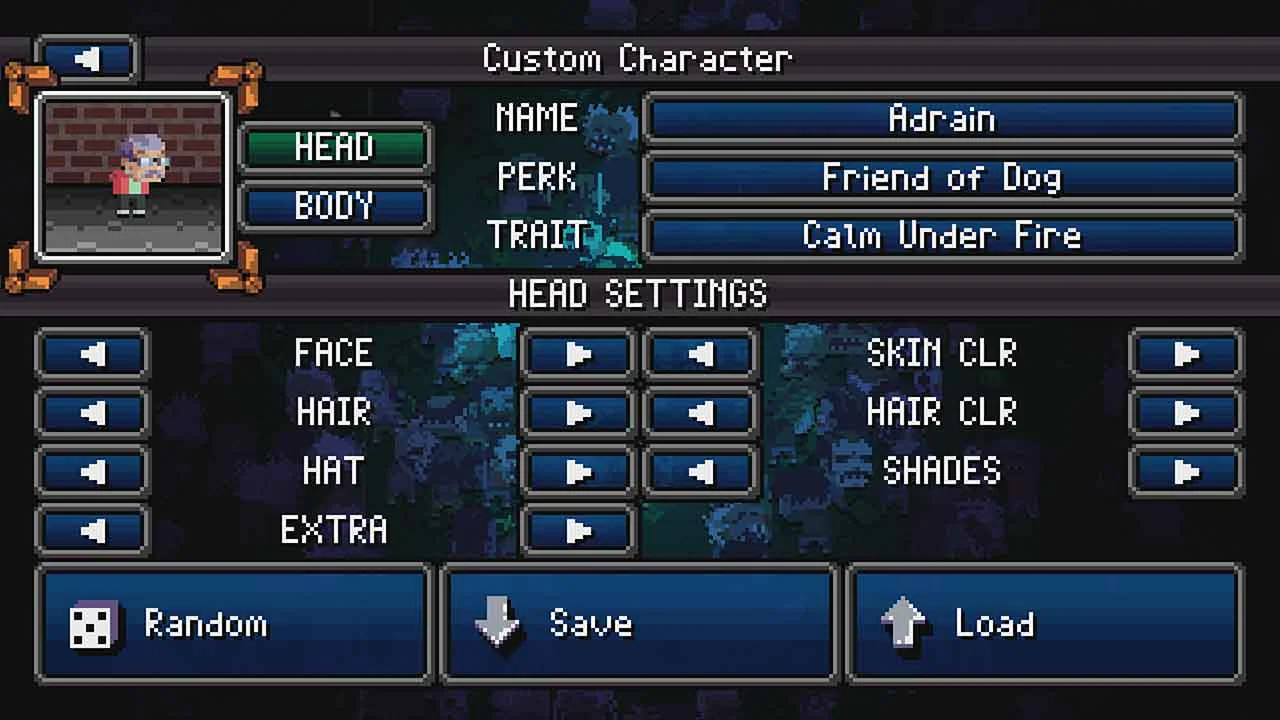 Jeu Death Road to Canada sur Nintendo Switch : customization du personnage