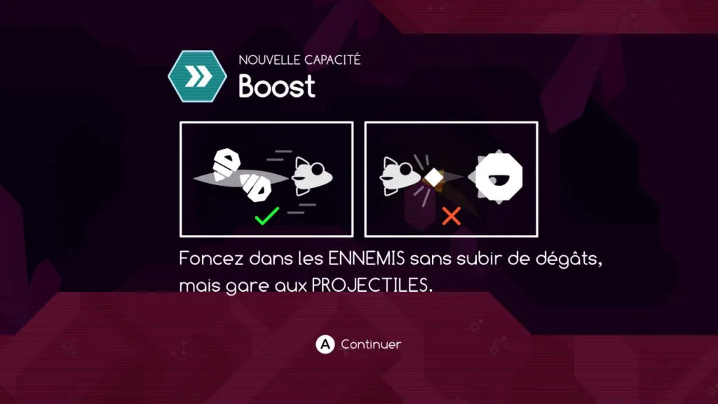 Une technique d’évitement est également au programme grâce à la gâchette droite (ZR) qui permet de traverser une horde d’ennemis sans subir de dégâts, attention cependant à ne pas se ruer tout droit dans un projectile, ce qui entame la santé du vaisseau et après trois impacts sur la carcasse, il faut compter une vie de moins sur les trois à disposition et recommencer la phase entamée. A noter que l’on peut jouer avec un duo de Joy-Cons ou avec la manette Switch pro.