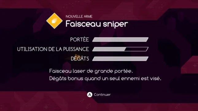 Des missiles moyenne portée à tête chercheuse sont également à disposition pour faire le ménage à l’écran et se sentir un peu moins oppressé. Le faisceau sniper longue portée ultra puissant termine de parfaire l’arsenal embarqué par notre vaisseau et se révèle bien utile pour les ennemis les plus gros ou les plus belliqueux.