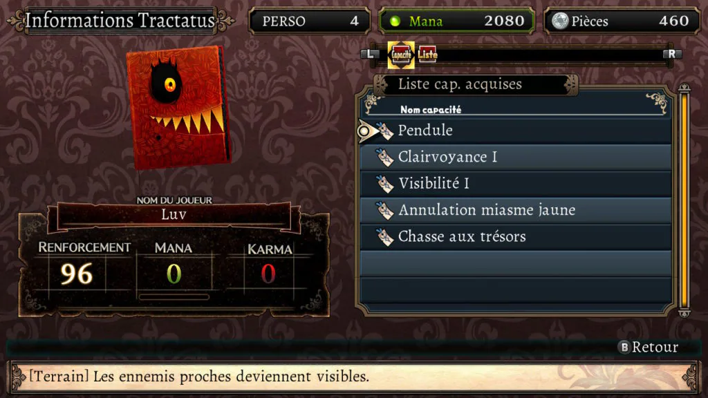 Nous sommes donc dans un Dungeon Crawler classique. Bien qu’il y ait certains aspects rappellant un RPG, le jeu se passe à la première personne. Vous n’incarnez ni Dronya, ni Luca mais une âme piégée.  Le fameux Tractatus de Monstrum, surnommé Trackie, renferme de lourds secrets. Et vous en êtes l’un d’eux. Votre âme est enfermée à l’intérieur des pages. Vous allez donc devoir obéir sans discuter aux ordres de Dronya. Mais jusqu’à quel point ? Nous vous laissons le soin de le découvrir. Vous avez à votre disposition une armée de pantins qui va vous servir d’escorte à l’intérieur du labyrinthe.