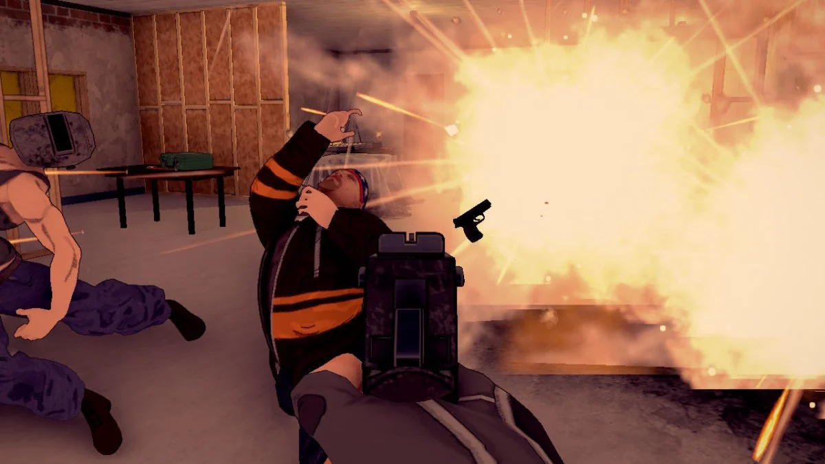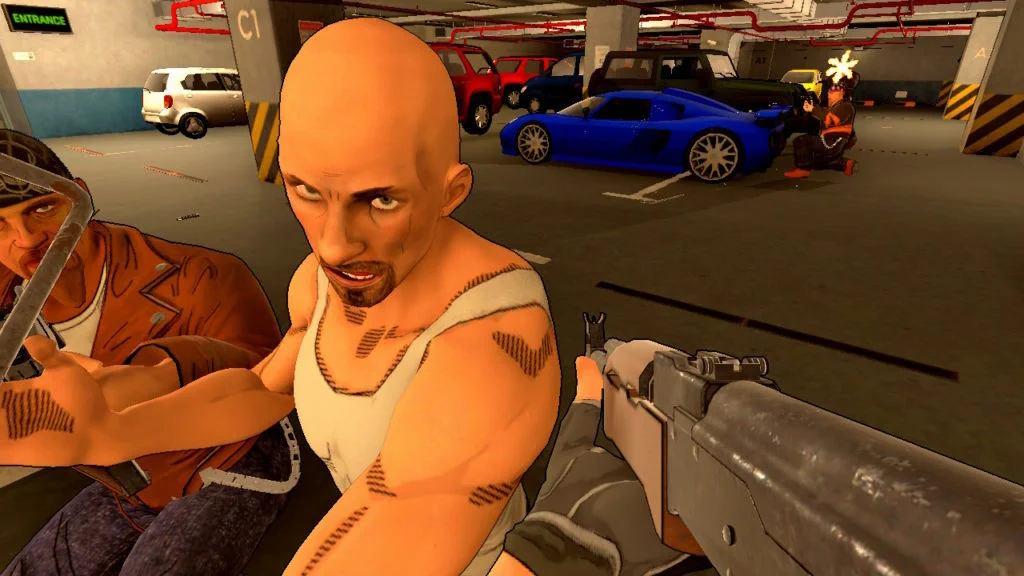 Vous avez été engagé pour démanteler le crime, une pièce à la fois. Et vous irez littéralement enfoncer une porte, exploser les vilains de la pièce, la fouiller si besoin pour ensuite passer à la suivante. Un appui sur le bouton B déclenche le coup de pied dans la porte et vous devrez être prêt à presser la gachette ZR pour vider votre chargeur sur les malfrats qui ne manqueront pas de riposter. Vous devrez viser juste et vite, vous ne disposerez que de quelques fractions de seconde de ralenti avant que l’action ne devienne vraiment chaotique. Quand tous les ennemis sont morts, faites le tour de la pièce pour récupérer des munitions ou un boost de santé avant de passer à la suivante.