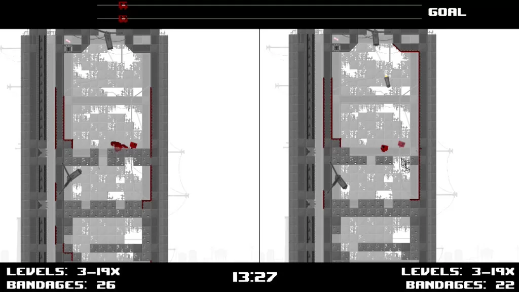 Cette version Nintendo Switch de Super Meat Boy débarque avec une nouveauté : un mode multijoueur ! Il ne s’agit pas ici d’un mode coopératif mais bel et bien d’une compétition. Prenez un Joy-Con et offrez le second à votre meilleur ami si vous l’osez, il pourrait très bien ne plus l’être après ça. Le Mode Course, comme son nom l’indique, vous invite à finir les niveaux le plus vite possible, chacun de son côté de l’écran. Plusieurs règles sont disponibles pour les amateurs de challenge et pour plaire à tous. On pourra choisir dans quel(s) monde(s) s’affronter, sur un certain nombre de niveaux, en mode normal ou en aléatoire, de quoi varier les expériences.