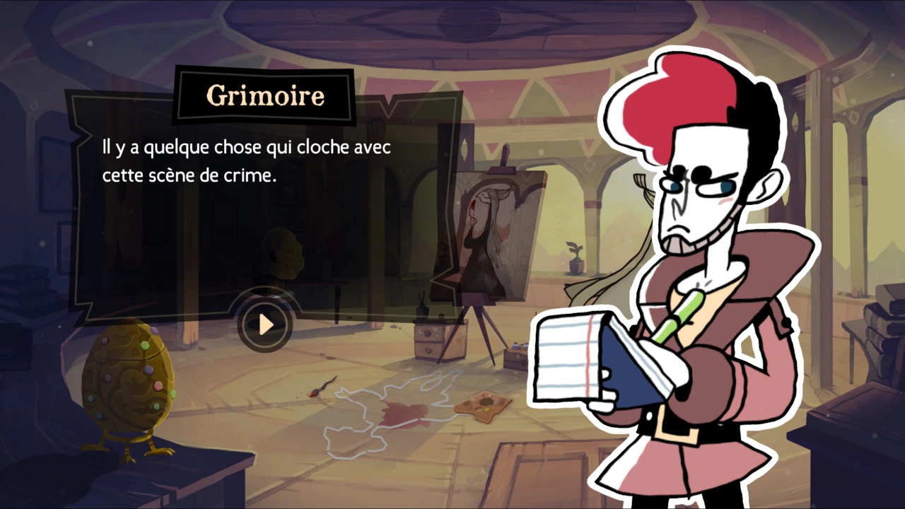 Les personnages de Tangle Tower sont hauts en couleurs, que l’on parle des habitants ou des détectives. Chacun a une personnalité bien marquée qui permet de creuser toujours plus loin dans cette mystérieuse énigme. Les détectives possèdent un grand sens de l’humour et de la dérision qui fait souvent mouche et nous pousse à continuer l’aventure à leurs côtés. Les animations sont sympathiques, le style cartoon est coloré et mignon malgré les circonstances macabres. Chaque lieu visité par notre duo dynamique possède sa propre identité sonore également, permettant de plonger dans une belle ambiance.