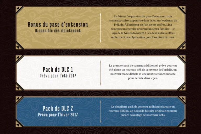 Si vous aimez Zelda BotW et que vous voulez en avoir encore plus, ces trois packs (season pack et 2 DLC) disponibles sur Wii U et Switch vont vous combler.